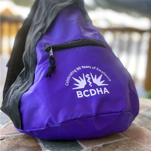 Celebrate 60 years of excellence with the exclusive BCDHA Anniversary Sling Bag! This sleek, lightweight, and durable bag offers a spacious main compartment, a secure front zippered pocket, and an adjustable strap for comfortable all-day wear.